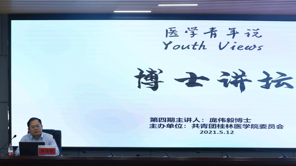 5月12日晚,校团委于临桂校区科学实验中心汇报厅举办第四期“医学青年说”博士讲坛。我校公共卫生学院副书记、副院长庞伟毅博士受邀开展“新时代大学生核心素养”专题讲座,校团委副书记高进涛出席并主持讲坛。