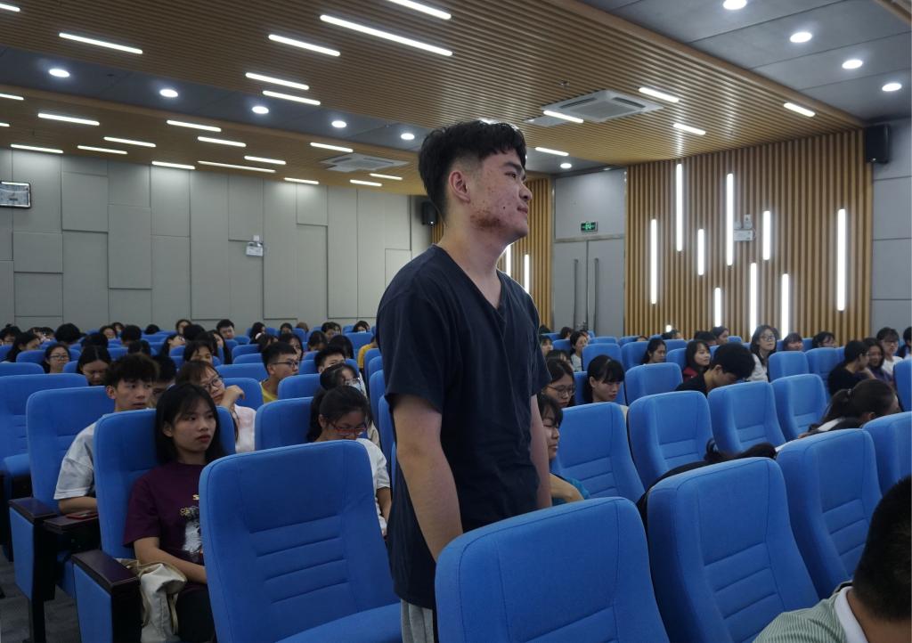 庞伟毅以新时代大学生核心素养的价值定位为出发点,深入剖析核心素养的主要特性与其价值追求。他表示,大学本科阶段是人生最为重要的一个阶段,同学们应在此阶段认真提升专业知识,努力培养正确三观,为未来的职业发展打下良好基础。他希望同学们能以学习为本,注重追求真理,提升个人素质,争做有创新能力、有责任担当、有综合素养的新时代中国青年。会后,同学们积极参与探讨交流,庞伟毅针对同学们的疑问作一一解答,并提出了宝贵的建议。庞伟毅博士对新时代大学生核心素养的讲解深入浅出,给予桂医青年极大的思考空间。