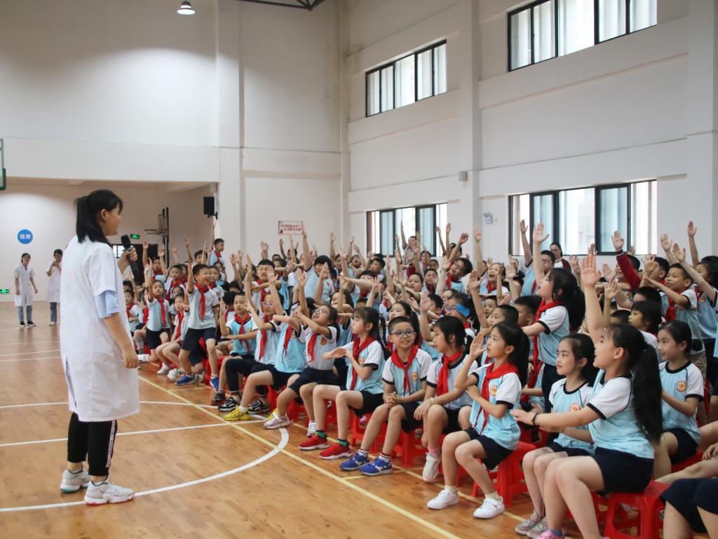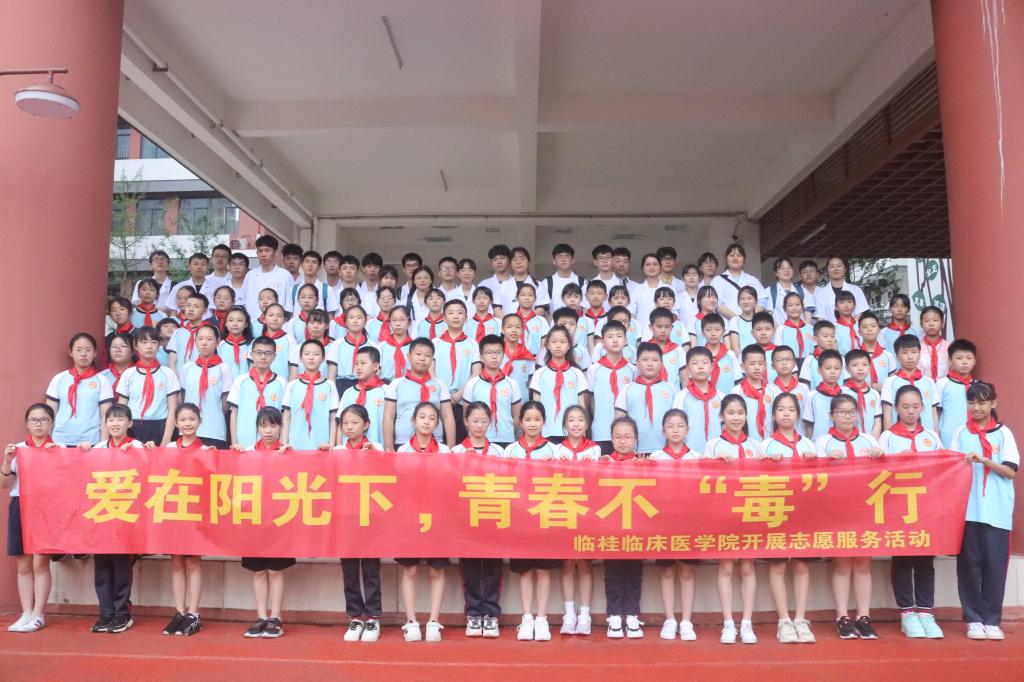 为将党史学习教育落实在具体服务工作中,扎实推进为群众办实事,以优异成绩迎接中国共产党成立100周年,5月12日,临桂临床医学院学生志愿者到桂林市博元小学开展以“爱在阳光下,青春不‘毒’行”为主题的健康知识宣讲活动。学工办辅导员敬晓娟、班主任伍灵灵,以及2020级临桂临床医学本科1班共83人参加此次活动。