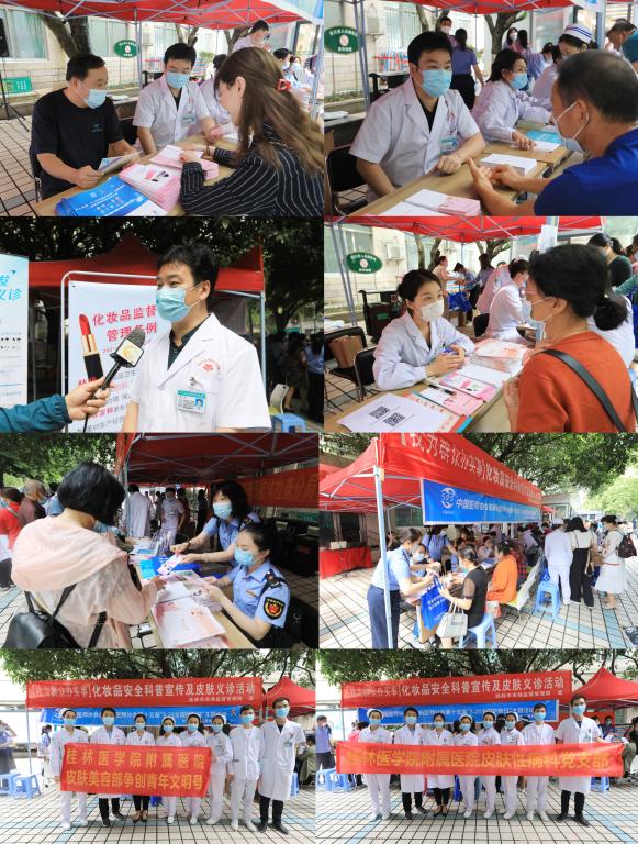 蒋伟致辞。他说,“5.25全国护肤日”是由中国医师协会皮肤科医师分会倡议设立的全国性公益护肤日,旨在通过活动,指导人们科学护肤,预防皮肤病的发生。今天是第十五个“5.25全国护肤日”,为响应中国医师协会皮肤科医师分会的号召,桂林市市场监督管理局和桂医附院携手共同举办科学护肤、化妆品安全知识义诊宣传、科普讲座等活动,希望通过此次活动加强群众对皮肤健康的意识,让群众深刻认识皮肤健康的重要性,树立选择专业医生进行护肤咨询的正确观念,为建设健康桂林、健康广西做出应有的贡献。