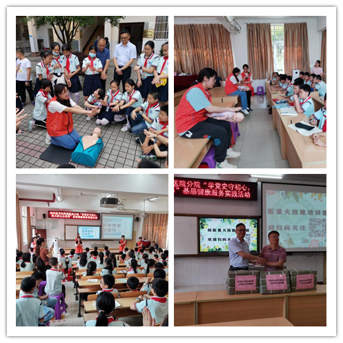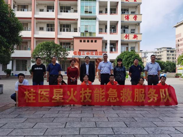 结合附属医院党史学习教育“我为群众办实事”基层健康服务活动主题,为提高小学生的急救意识和急救能力,使学生掌握基本救护知识和技能,为歌颂中国共产党百年辉煌和历史征程,激发学生们的学党史热情。5月27日下午,附属医院分院党支部联合桂林医学院“星火技能急救”服务队来到桂林市临桂区城区第二小学开展“学党史守初心,我为群众办实事”基层健康服务实践暨应急救护科普进校园公益活动。