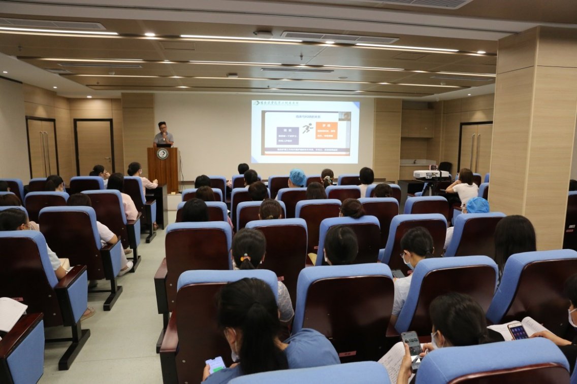 为提高临床一线护士的科研能力,促进临床护理与护理科研同步发展,6月11日,第二附属医院护理部在PET-CT楼会议室举办了护理科研专题讲座,本次讲座分为线上线下双线培训模式,护理部、各科室护士长、护理骨干近100人参加了培训。讲座由护理部副主任梁小燕主持。
