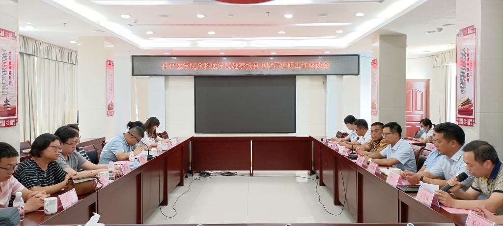首先,大家参观了恭城县“大健康”创新产业“瑶汉养寿城”及医疗集团总院(恭城县人民医院),对医疗集团运作模式、区域内医共体优质医疗资源整合、双向转诊及医疗产业创新思维有了新的认识。卫健局领导和医疗集团领导充分肯定了桂林医学院订单定向全科医生在县域医共体分级诊疗中的作用,对桂林医学院全科医学院的人才培养质量给予高度认可,并希望能有更多全科医学毕业生加入恭城医疗队伍。现场参观结束后,双方就全科医学生的在校教育、毕业后教育、规培生涯规划、签约服务期满后就业安排、助理全科医生规培基地建设、医教协同等问题进行了充分讨论并达成了初步共识。此次研讨会使我院明晰现有的人才培养过程中存在的短板问题,为我院人才培养重点转变指明方向。相信经过磨合及改进,订单定向全科医学教育的产教融合优势会进一步凸显。