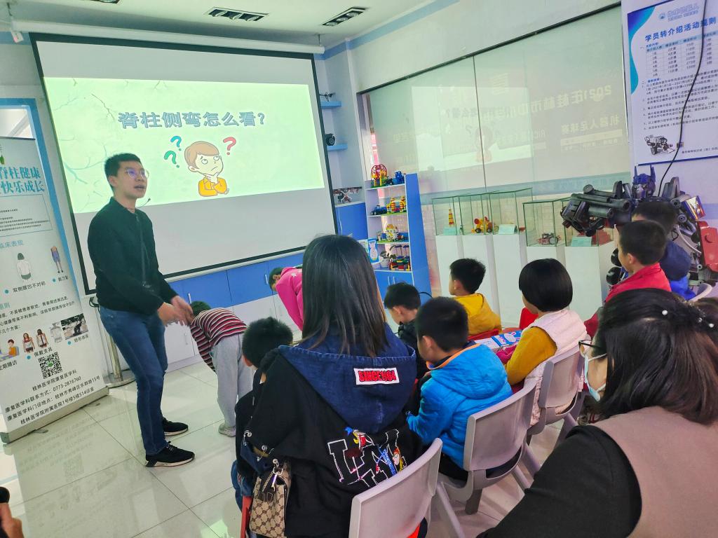康复医学系、附属医院康复医学科高度关注儿童的脊柱健康问题,为呵护孩子们的身心健康,深入基层开展为民服务活动,将党史学习教育持续推进,10月30日晚,康复医学系组织近10人的宣讲团队再次深入基层进行脊柱健康宣讲活动,此次活动在优乐机器人教育机构进行,十五组适龄儿童及其家长约40人参加。