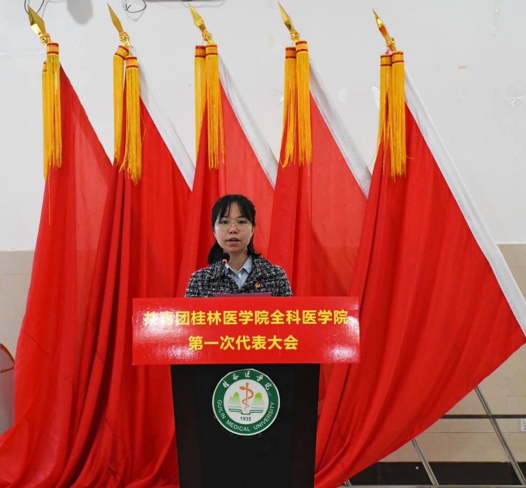 11月7日上午,共青团桂林医学院全科医学院第一次代表大会在我校临桂校区南楼多功能报告厅举行。学校团委书记龙亮、全科医学院党委副书记潘涛、各二级学院团委老师及学生干部代表、59名正式代表及20名列席代表出席本次会议。大会由全科医学院团委书记陈辰主持。