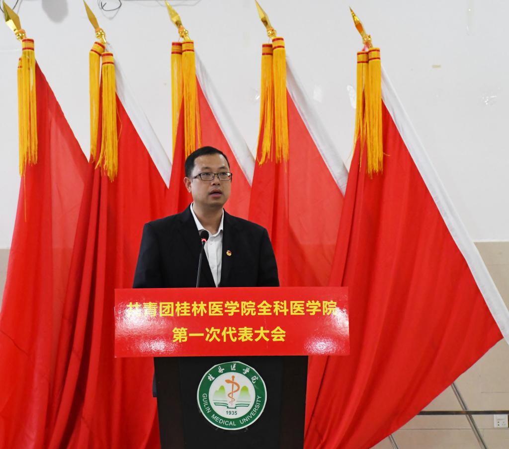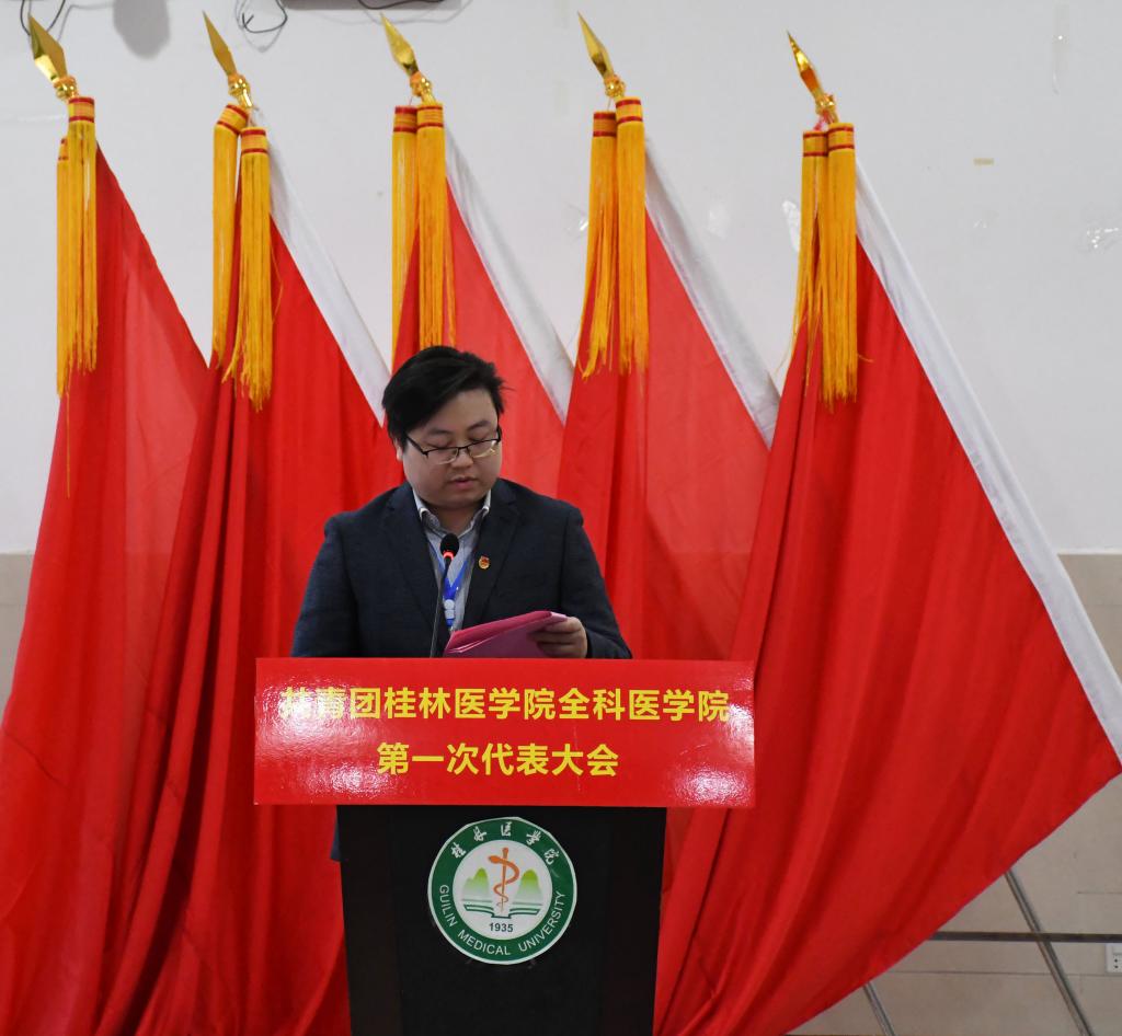 陈辰作共青团桂林医学院全科医学院委员会工作回顾与总结,明确在接下来的团委工作中紧紧团结团员青年,以构建和谐校园为核心,加强团员思想政治教育,以提高人才培养质量为目标,提升学生服务基层综合能力,打造求真务实的学生干部队伍,以服务为先的理念,不断加强团的自身建设。