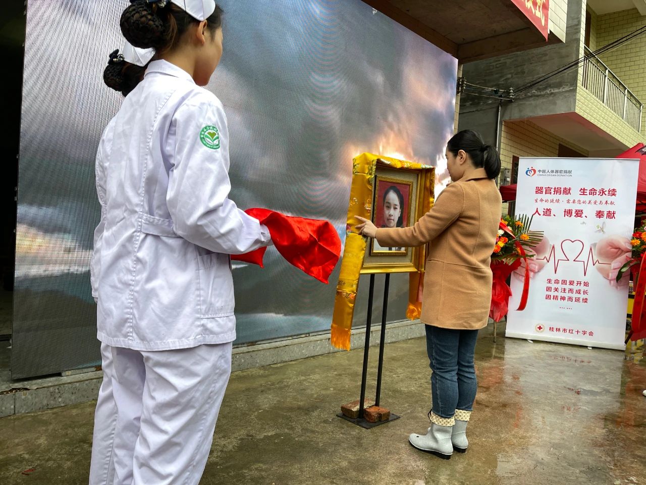唐小荣致辞。 他说,器官移植是挽救器官衰竭患者生命的有效途径,而这前提是要有人捐献器官。器官捐献者为社会做出了最后的贡献,让自己的生命更有价值和意义。这种无私奉献的崇高精神,是“人道、博爱、奉献”的红十字精神和人类进步、社会文明的具体体现,值得人们永远感谢和铭记。桂林的人体器官捐献工作一直走在全区的前列,截止2021年11月15日,全市累计捐献407例,占全区捐献量的六分之一,位居全区前列,累计捐献器官1256个,让近2000名患者重获新生或重见光明。阳朔县器官捐献工作一直走在桂林市前列。建立何玥纪念馆旨在传播新时代生命文化,倡导社会新风尚,践行社会主义核心价值观,助力桂林市全国文明城市建设。