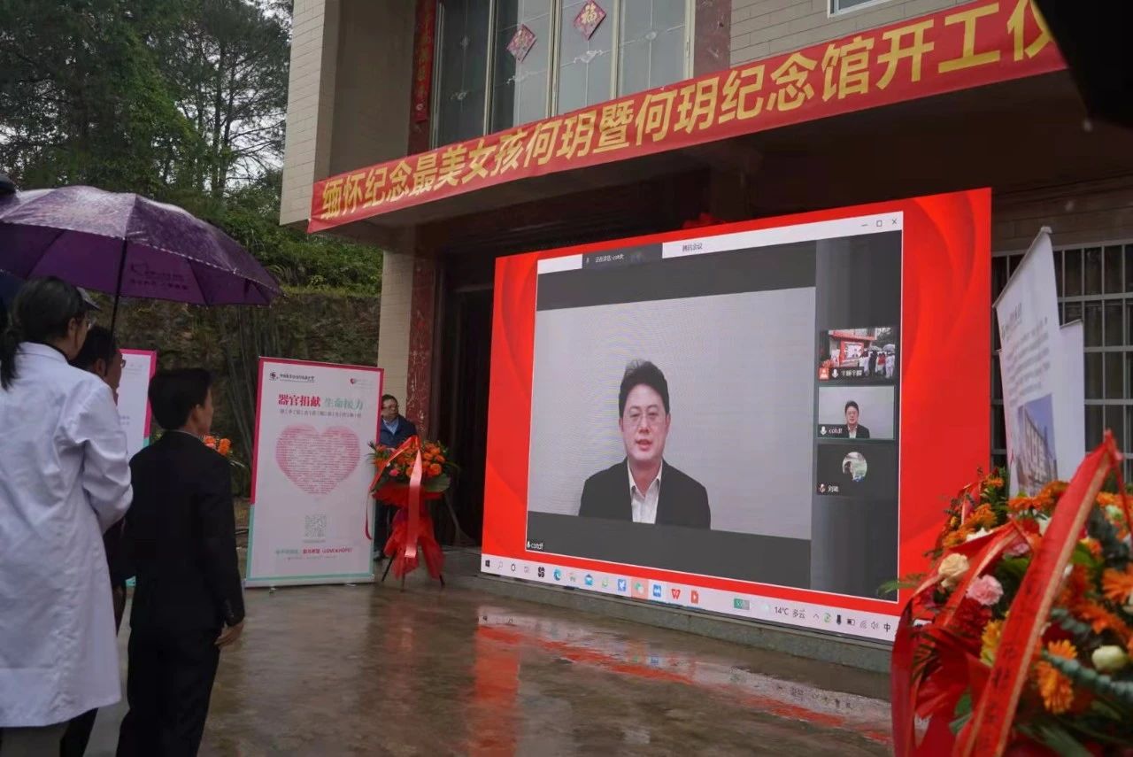 赵洪涛以现场视频连线的方式致辞。“你来过,你不曾离开,你用平凡生命最后的闪光,把人间照亮。”他表示听了感动中国人物何玥的颁奖词特别的感动,器官捐献体现的是人间大爱,器官捐献是传递生命,何玥作为我们的楷模,给予我们激励。今天在何玥的故乡举行何玥纪念馆建设启动仪式,具有缅怀纪念意义,也是为了更好地传承和发扬何玥的精神,中国器官移植发展基金会将继续宣扬何玥精神,并为推动桂林器官捐献和移植事业做出贡献。