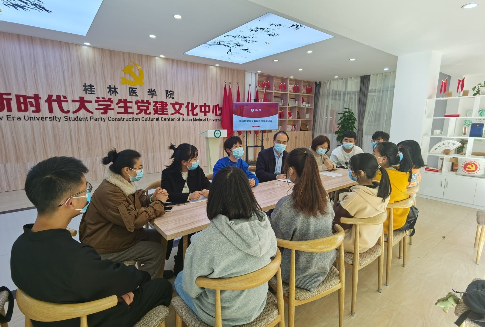 12月7日下午,附属医院(临床医学院)在我校临桂校区大学生党建中心召开少数民族师生座谈会。附属医院(临床医学院)党委副书记王海平、少数民族学生代表和学工办辅导员代表参加了座谈会。