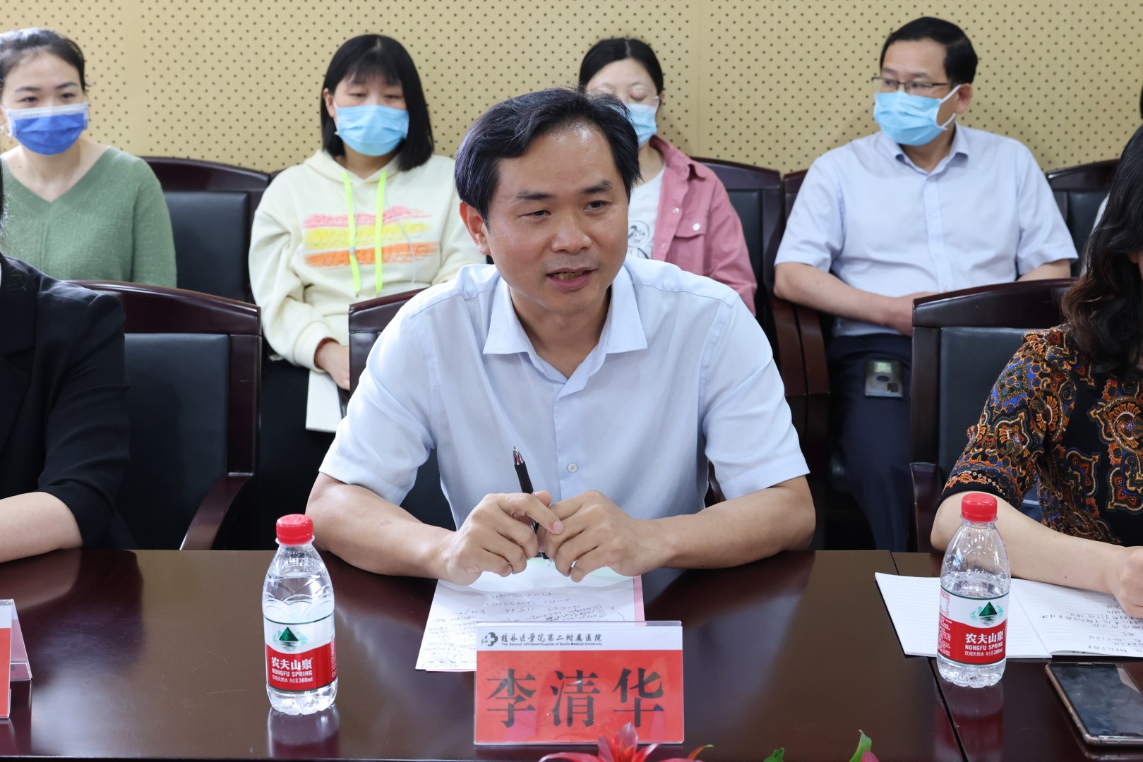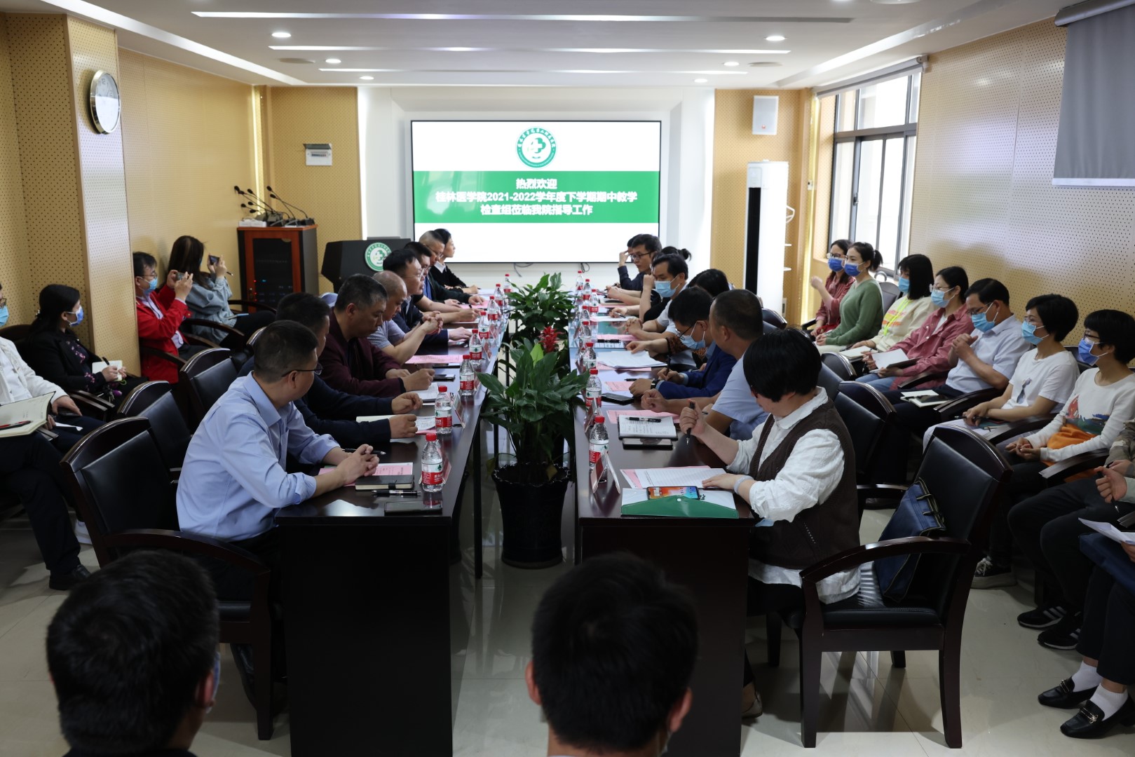 5月12日上午,校党委常委、副院长李清华率教评中心、教务处相关负责人一行9人深入临桂临床医学院进行期中教学工作检查。第二附属医院(临桂临床医学院)党委书记葛波等院领导及各教研室主任、教学秘书、教学管理部、学生工作办公室人员参加汇报会。