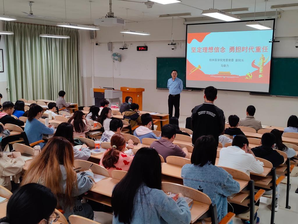 马献力围绕“青年”这一话题,从青年的历史地位和时代使命、新时代中国青年的奋斗目标以及桂医青年当勇挑重任、砥砺前行等三个方面进行了讲解和阐释。马献力的讲课紧密联系实际,深入浅出、内容丰富,学员们认真听讲,仔细做笔记,整个课堂充满了浓厚的学习氛围。