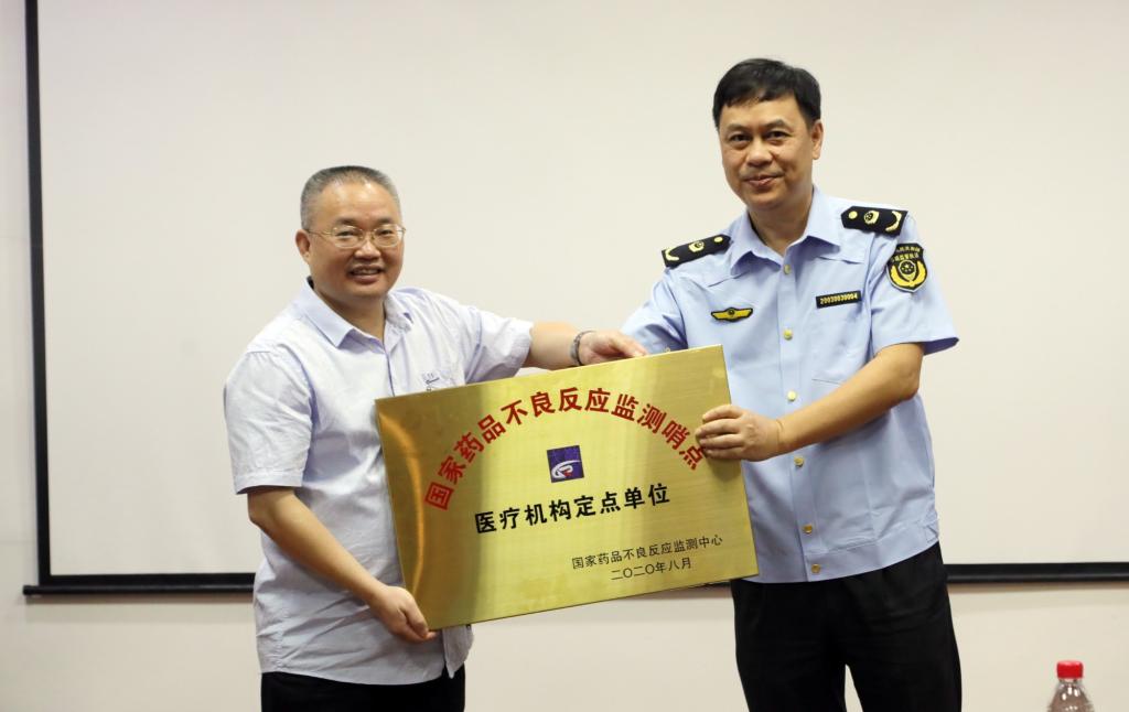 黄文向王群颁授“国家药品不良反应监测哨点”牌匾