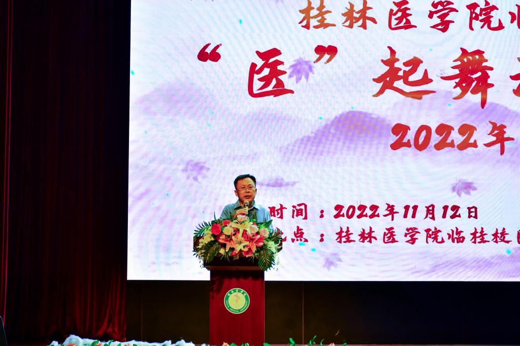 11月12日19:00,临桂临床医学院“‘医’起舞动,唱响青春——2022年文艺晚会”在大学生活动中心4楼演艺厅精彩上演。第二附属医院(临桂临床医学院)党委书记葛波、党委副书记黄宇平,各二级学院团委老师,临桂临床医学院各班级大学生导师、班主任、学工办老师以及全体学生共同参加晚会。