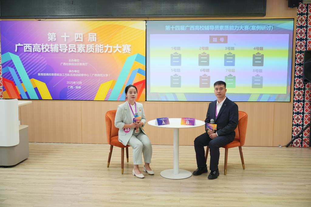 本次比赛为期三天,分“赋能成长”和“实战演练”两个单元,共设置赋能微课、基础知识测试、学情分析、案例研讨、谈心谈话五个环节。经过初赛选拔,共有64名选手晋级决赛。决赛现场环节,陆俊荣沉着冷静、逻辑严明,充分展现了我校辅导员队伍扎实的理论功底、过硬的专业技能和优秀的职业素养。