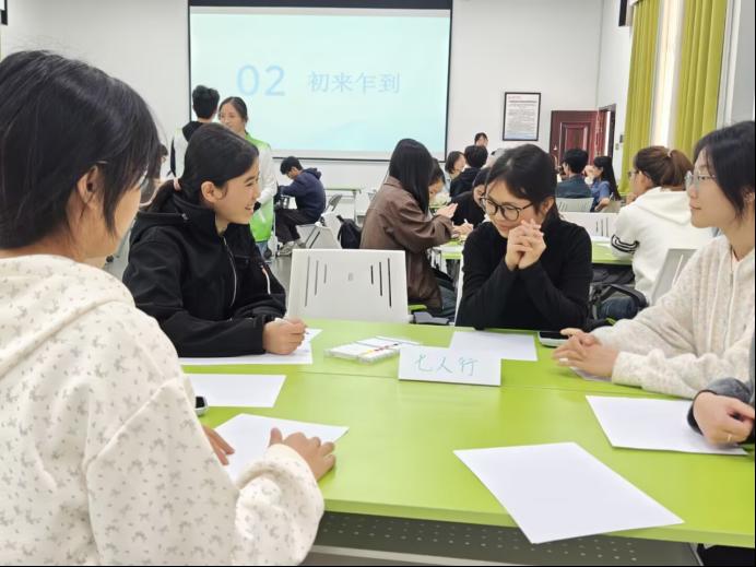 活动在“破冰之旅”中拉开帷幕。同学们通过模拟“小雨”“中雨”等身体动作迅速活跃了现场氛围,有效消融了彼此间的陌生感与拘谨。“初来乍到”环节中,新生们以小组形式展开自我介绍,分享家乡文化与个人兴趣,初步建立起团队信任和协作基础。“人生之书”环节引导同学们回顾过去、审视当下、展望未来。大家认真书写“过去的我”“现在的我”与“将来的我”,在梳理个人成长轨迹的同时,也增强了对自我的认知,提升了生涯规划意识。“烫手山芋”环节聚焦现实挑战,鼓励同学们坦诚交流入学以来在学习方法与人际交往中遇到的困惑。通过小组讨论与朋辈学长的经验分享,大家共同探讨应对策略,有效缓解了独自面对困难的压力。“心灵树洞”与“把爱传递”环节中,新生们将大学愿望贴在许愿树上,并在明信片上写下鼓励话语,随机赠予身边同学,不仅传递了温暖与关怀,也进一步增强了集体凝聚力。
