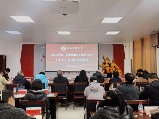 1月6日下午,我校在临桂校区明德楼402会议室召开2026年第一期组织员工作沙龙暨专职组织员述职考核会议。学校专兼职组织员及党委组织部相关人员参加会议,会议由校党委常委、党委组织部部长韦日明主持。