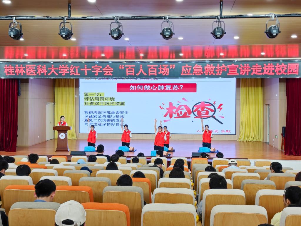 3月14日下午,我校红十字会“百人百场”应急救护宣讲团走进桂林信息科技学院,面向该校师生开展应急救护知识宣讲及防艾宣传教育志愿服务活动。