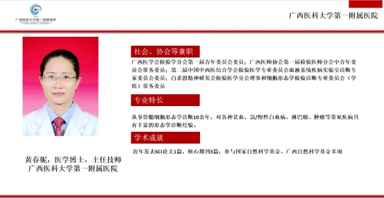 (七)黄春妮,医学博士,主任技师 广西医科大学第一附属医院