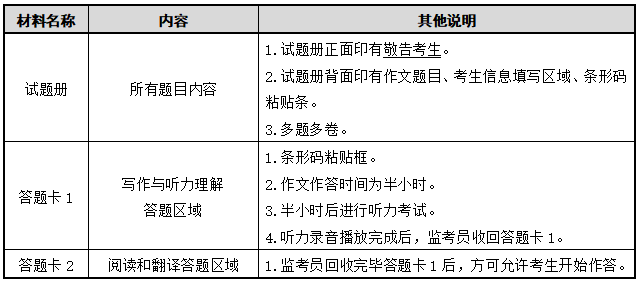 四、四六级考试材料说明