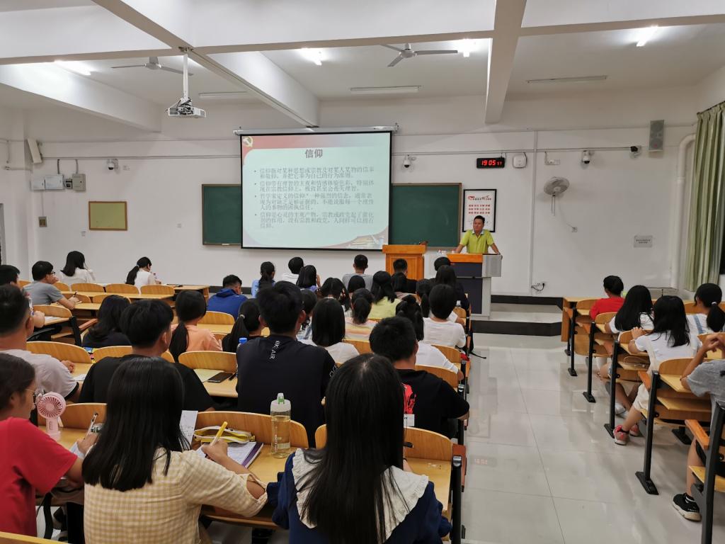 孔繁荣指出,“我们为什么要入党?”这是一个值得深思的问题。加入中国共产党是一件光荣的事,但更是一个你需要为之奋斗终生的使命!他结合入党的基本条件以及党员的基本要求,引导和鼓励同学们积极向党组织靠拢。作为新时代的大学生,同学们肩负重任,应主动学习党的基本知识,弘扬党的指导思想。在努力成为一名中国共产党党员的过程中,严格要求自己,遵守纪律,勤于学习,积极向上,学习党的先进理念,结合自己的实际情况,将理论与实践相结合,把自己锻炼成合格的党的接班人。