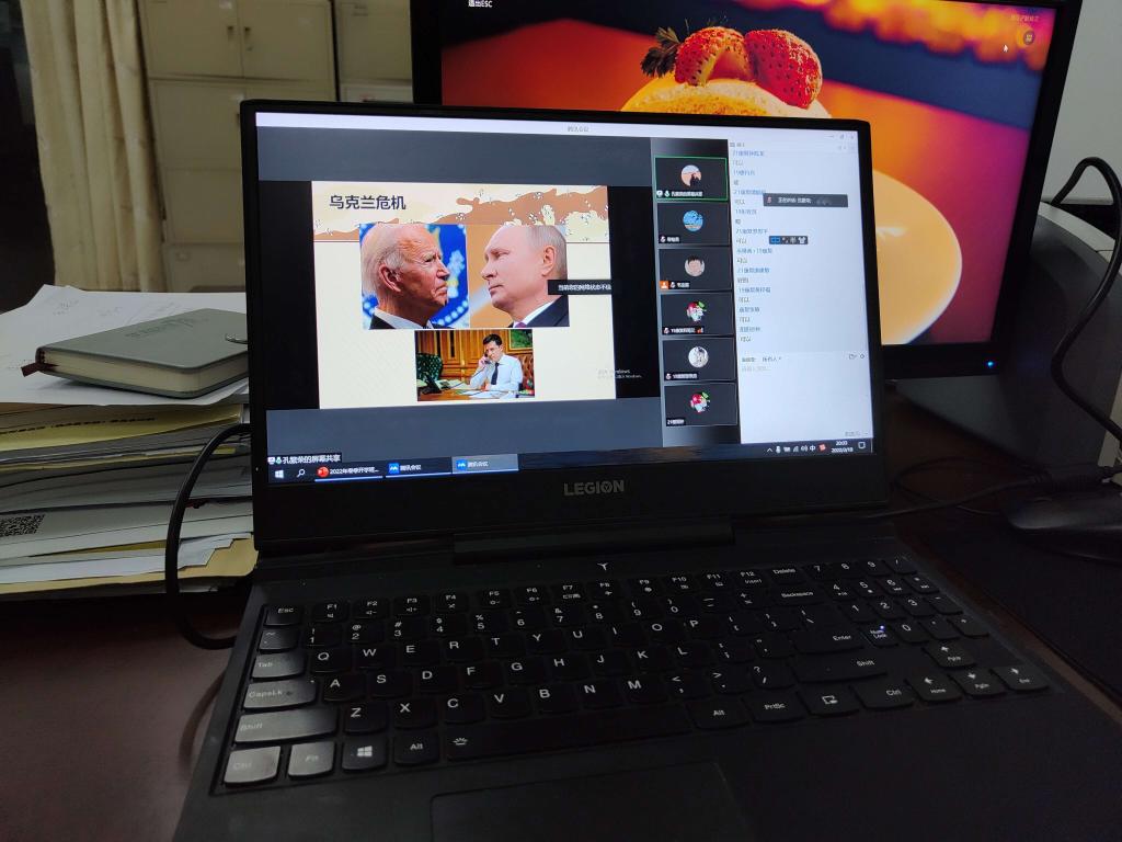 孔繁荣从美苏冷战、苏联解体、北约东扩等事件出发,剖析俄乌战争背景和当下错综复杂的国际关系。容桂荣解读学校疫情防控相关文件精神,指导同学们做好疫情防控要求,并带领学习两会精神。