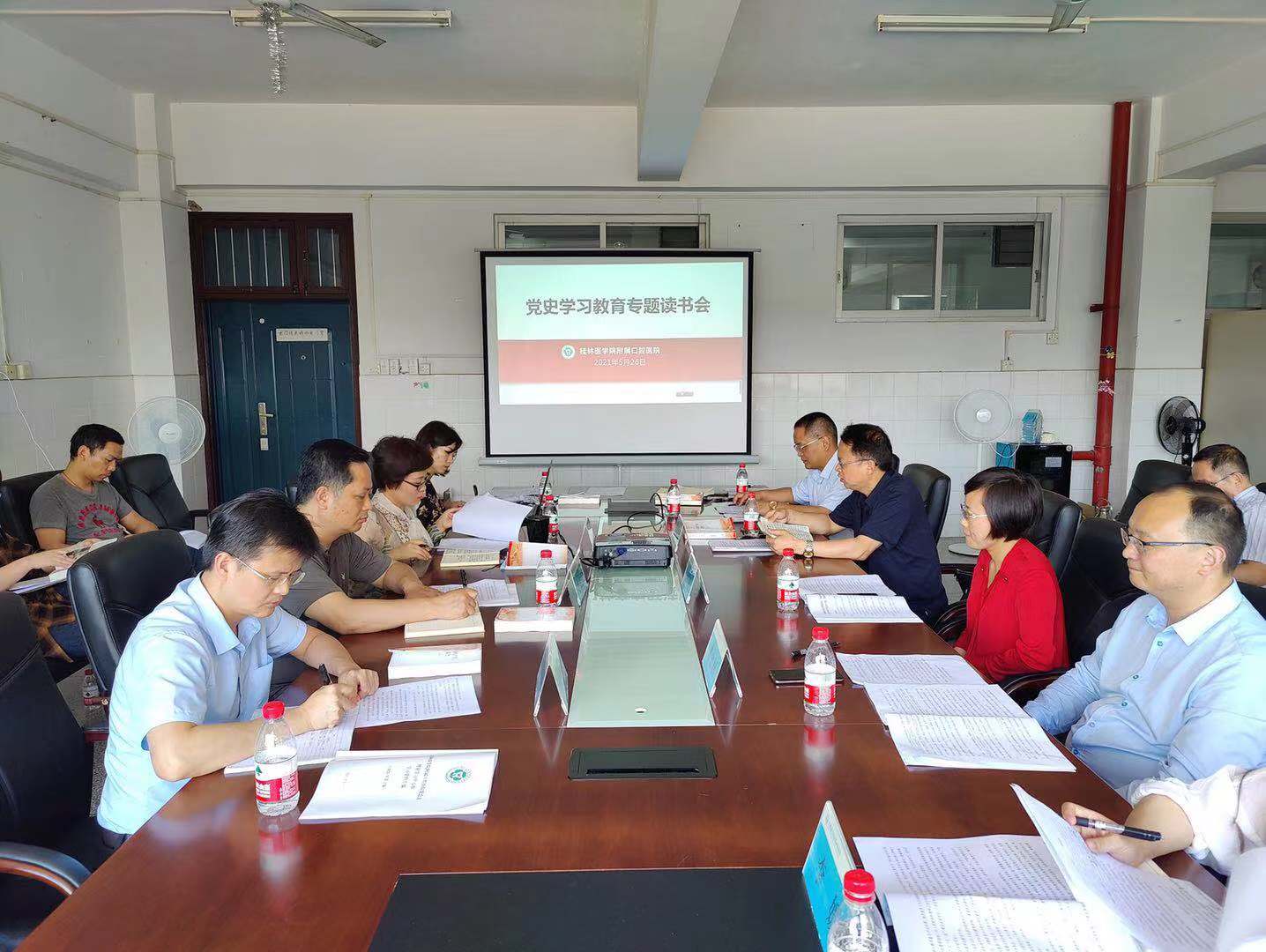 5月26日下午,附属口腔医院在科教楼308会议室召开2021年第2次党总支理论学习中心组(扩大)集中学习会暨党史学习教育专题读书会。医院党政领导班子、党总支委员、中层干部、党支部书记参加学习,会议由党总支书记邓宏林主持,学校党史学习教育工作第四指导组组长、组织部副部长崔俊娜到会指导。