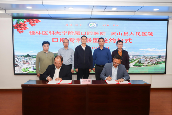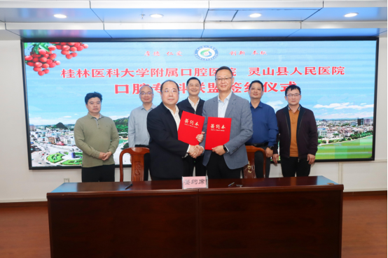 随后,双方代表正式签署口腔专科联盟合作协议。根据协议,两院将建立长期稳定的合作关系,构建“上下联动、资源共享、优势互补” 的口腔医疗服务体系。桂林医科大学附属口腔医院将充分发挥专科联盟的纽带作用,让基层群众在家门口就能享受到优质、便捷的口腔医疗服务,为区域口腔健康事业发展作出新的更大贡献。