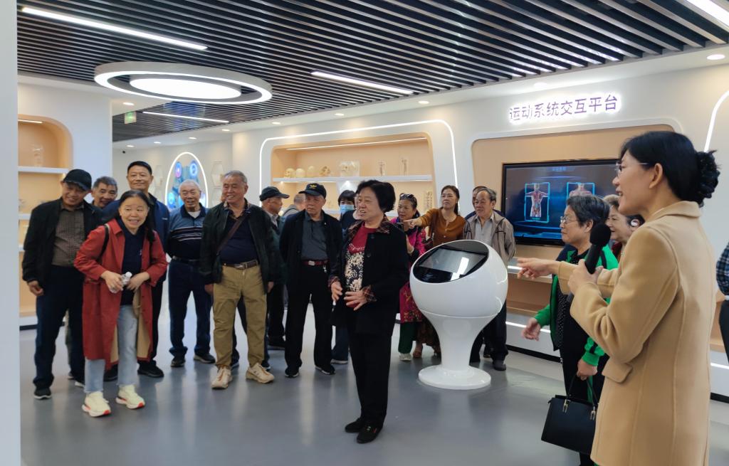 在生命科学馆内,老同志们被眼前丰富多样的教学标本、先进的展示设备以及充满趣味的科普内容深深吸引。他们认真聆听讲解,纷纷驻足观看、仔细询问,饶有兴致地体验急救技能、“食物的旅行”、运动系统交互平台等设施,纷纷称赞展馆的多元化和现代化。