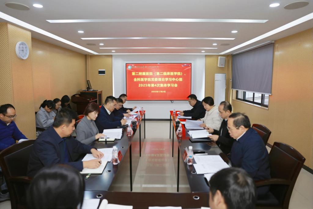 12月5日,第二附属医院(第二临床医学院)、全科医学院召开党委理论学习中心组2025年第4次集体学习(扩大)会。桂林医科大学党委副书记、校长曾小云,党办校办主任彭靖到会巡听旁听指导。医院、全科医学院领导班子、党委委员和全体中心组成员参加会议。会议由党委书记葛波主持。