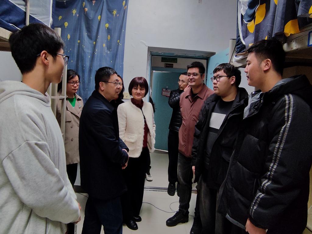 会后,院领导带队检查实验室新学期准备情况及学生宿舍,并与学生亲切交谈,勉励同学要努力学习,树立学习目标。