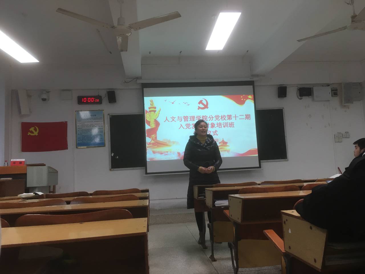 为做好发展对象的培养教育工作,提高党员预备队伍的政治素养和理论水平,11月28日,人文与管理学院分党校在东城校区CR205教室开展第十二期入党发展对象培训班开班仪式暨第一讲,由人文与管理学院党委书记邓娜担任主讲,共28名入党发展对象参加培训。