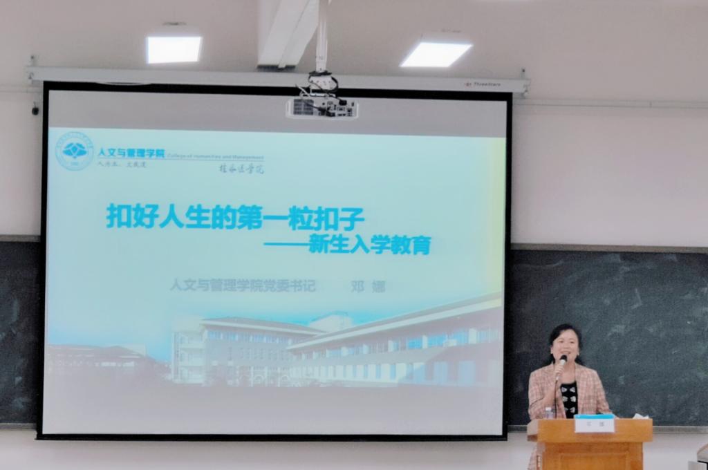 2020年11月6日下午,人文与管理学院党委书记邓娜在教学北楼303为2020级新生做入党教育启蒙教育讲座,主题为《扣好人生的第一粒扣子》。