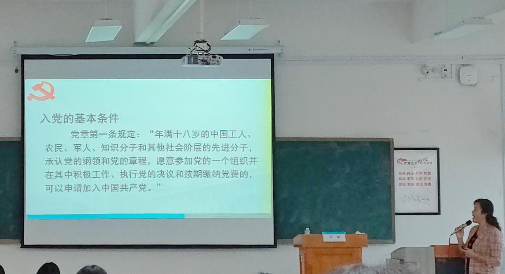 邓娜向新生们详细讲解了大学生入党条件、流程、相关的党内规章制度,具体介绍了人文与管理学院基层党组织建设的基本情况,以优秀学生为代表,让新生们耳濡目染榜样的力量。邓娜还特别向新生强调了国家宗教事务条例的相关内容。