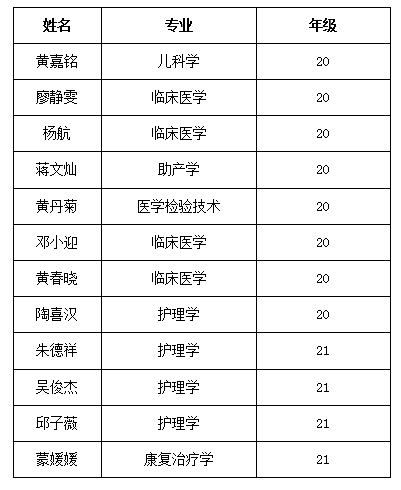 7月10日,田径运动员梁影馨(人文与管理学院)在女子普通本科组100米比赛获第三名;韦玉洁(药学院)获女子三级跳远第三名;唐莉婵(全科医学院)获女子100米栏比赛第三名;冯智晖(医学检验学院)在400米比赛第三名并打破我校400米纪录。7月13日,罗佳妮(药学院)、韦玉洁(药学院)、梁影馨(人文与管理学院)、林梓榆(临床医学院)获女子4x100米接力第三名。7月14日,罗春凤(公共卫生学院)、林梓榆(临床医学院)、郑琇丹(护理学院)、梁影馨(人文与管理学院)获女子4x400米接力第二名的佳绩。