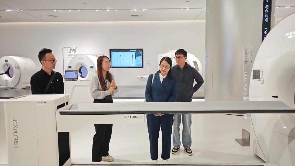 在上海联影,团队参观了企业文化展厅及产品展示中心,了解其在高端医疗影像设备、AI辅助诊疗等领域的创新成果。联影医疗代表详解公司“创新+人才”双轮驱动战略,分享校企联合培养智能医学影像人才的实践经验。双方围绕“医学+AI”专业建设、人才联合培养、实习就业基地共建等议题展开交流,为深化校企合作、构建协同育人机制奠定基础。
