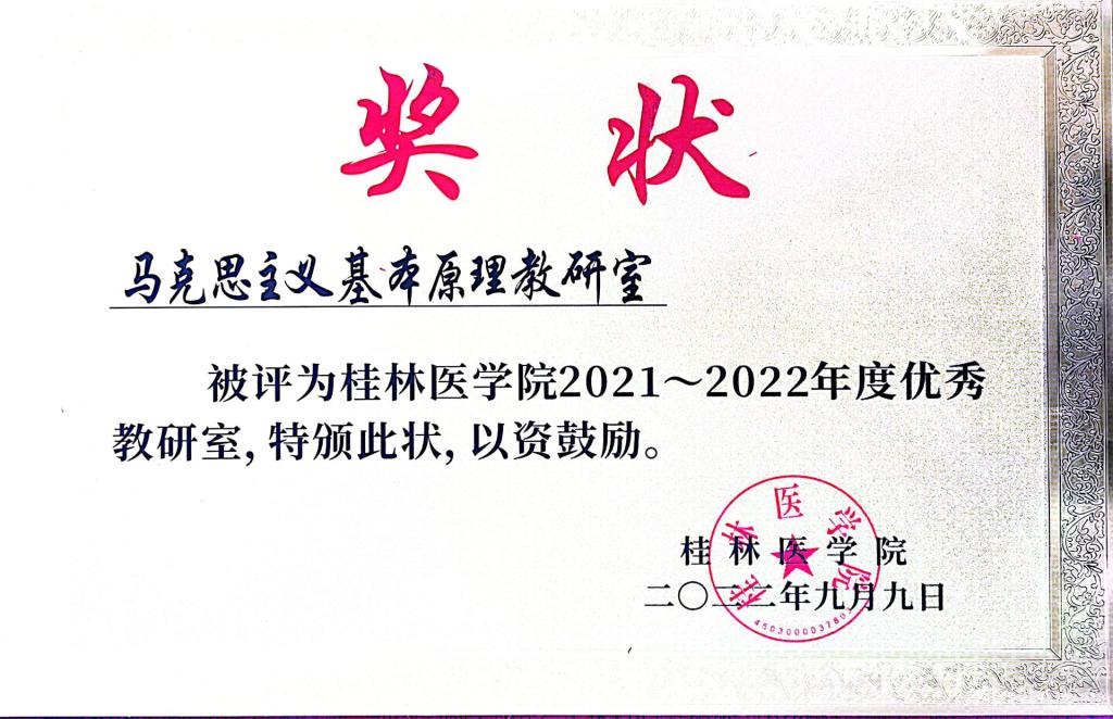 马克思主义基本原理教研室获得 2021-2022年度优秀教研室 荣誉称号