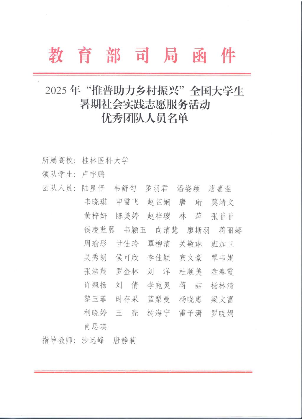 近日,教育部语言文字应用管理司、共青团中央青年发展部联合发文,对在2025年“推普助力乡村振兴”全国大学生暑期社会实践志愿服务活动中表现突出的团队与师生予以表扬。我校“微光成炬”推普助力乡村振兴服务团凭借扎实的实践成果与创新的育人形式,荣获优秀团队表扬。