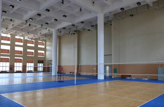 目前我校乐群校区、东城校区、临桂校区的体育室外运动场地面积共计77061平方米,其中篮球场23个,排球场19个,300米塑胶田径场1个,400米塑胶田径场2个,羽毛球场14个,室内乒乓球馆1个,门球场2个,网球场10个,健美操、形体、武术房6个,健身房1个以及待建的大型综合体育馆。在临桂校区、东城校区各设有1个学生体质健康测试中心,并配有身高体重测试仪、肺活量测试仪、坐位体前屈测试仪。