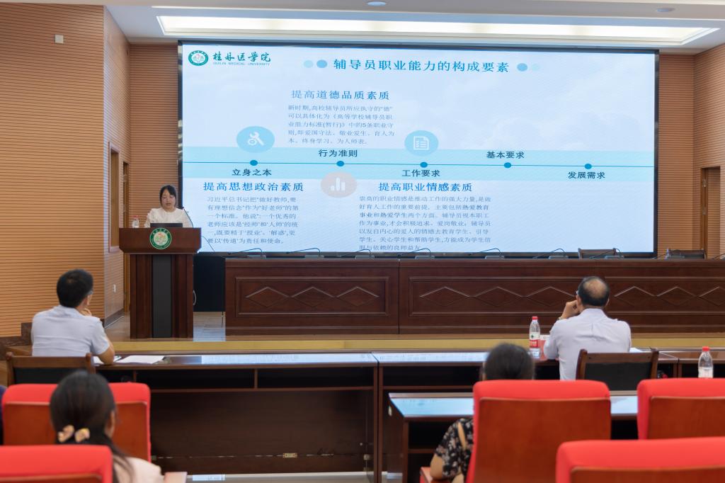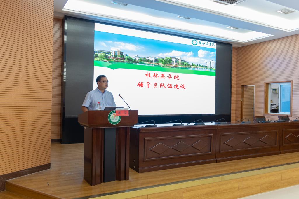 学生工作部部长、研究生工作部部长龙亮就如何做好辅导员工作提出四点建议:一是对标对表,强化顶层设计。要贯彻落实国家教育方针、全国教育大会精神、全国高校思想政治工作会议精神以及《桂林医学院关于进一步加强和改进辅导员队伍建设的意见》等13项制度文件,深刻领会文件精神,不断提高教育管理服务水平。二是以生为本,明确职责担当。以辅导员的九项工作职责为抓手,因材施教,乐于奉献,情系学生。三是创新形式,优化培养培训,努力造就一支信念坚定,数量充足,结构合理,能力突出,勇于担当的高水平辅导员队伍。四是注重激励,优化发展空间,注重选树典型。