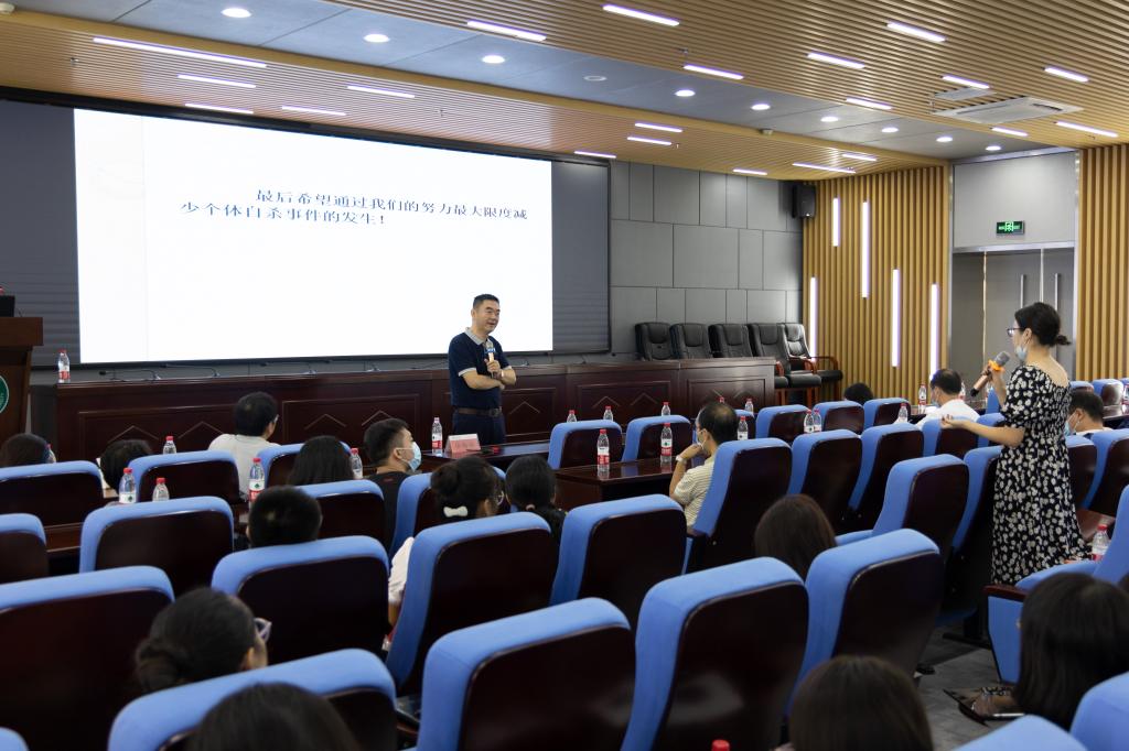 为推动我校大学生心理危机干预四级网络预警机制建设,加强大学生心理健康管理,着力提升学生心理健康素养,2021年9月26日,中南大学唐海波教授应邀到我校作大学生心理危机干预技术与应对策略专题讲座。校大学生心理健康教育工作领导小组成员,学生工作部(处)、研究生工作部、国际教育学院领导,各二级学院分管学生工作领导,学生工作部(处)全体人员、全体专兼职辅导员、全体专兼职心理健康教育课教师、全体专兼职心理咨询师参加了此次讲座。