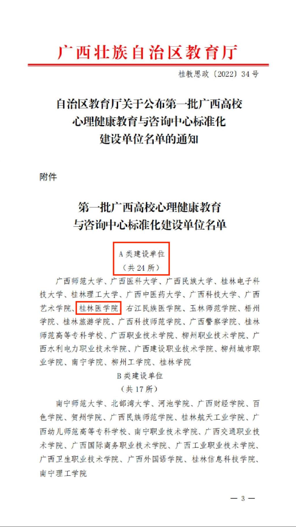 近日,根据自治区教育厅下发的《关于公布第一批广西高校心理健康教育与咨询中心标准化建设单位名单的通知》,我校被评为第一批广西高校心理健康教育与咨询中心标准化A类建设单位。