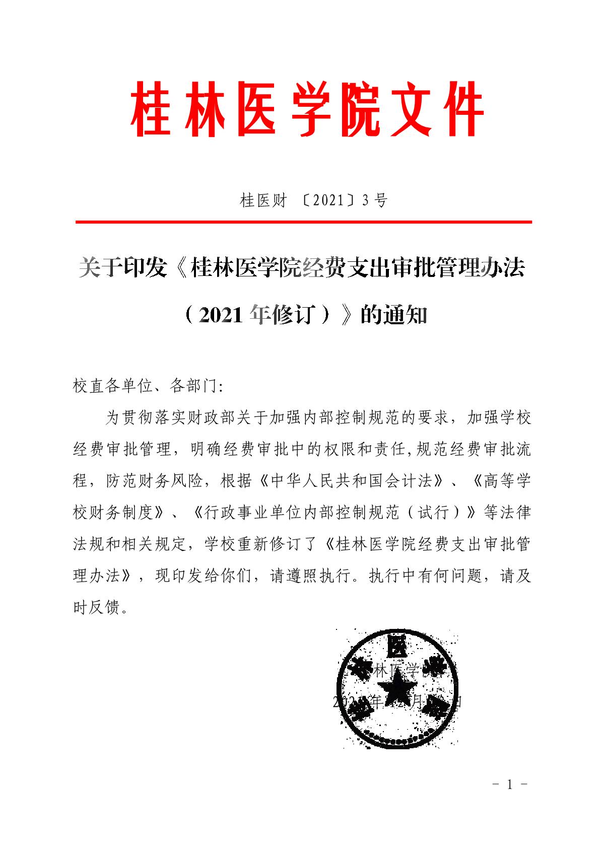 关于印发《桂林医学院经费支出审批管理办法(2021年修订)》的通知