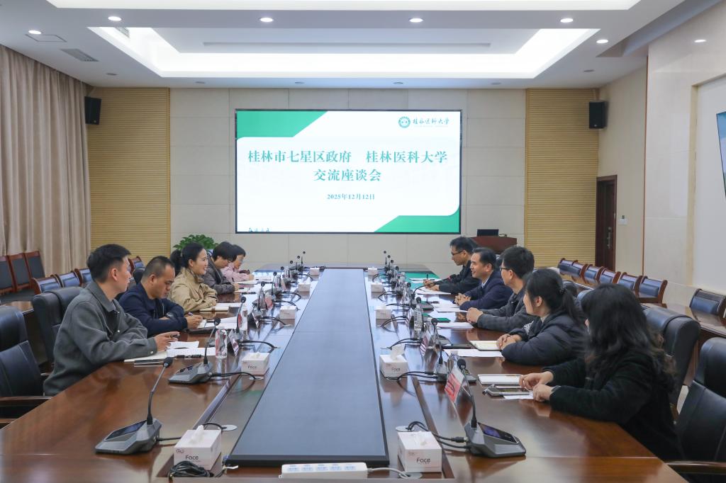 2025年12月12日上午,桂林市七星区人民政府副区长伍晖琳率队到我校就产学研合作,校友招商,大学生就业等问题进行座谈交流,我校副校长李清华出席交流会议并介绍相关情况。校友办、产学研合作处、发展规划与医院管理处、教务部、就业指导中心等相关人员参加会议。