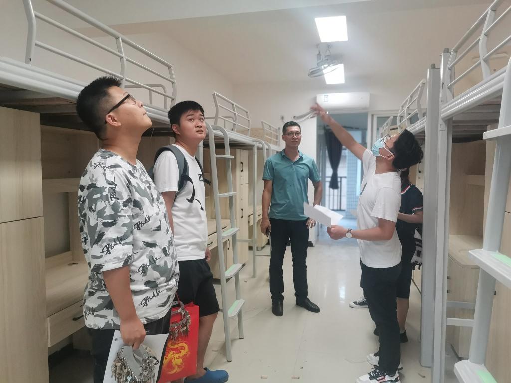 为深入了解研究生思想动态,做好秋季开学和节假日期间研究生安全稳定工作, 9月18日至22日,研究生工作部组织开展东城、临桂校区学生宿舍安全隐患排查。研究生工作部肖湘君部长带队,莫丽琴副部长、研究生工作部唐劲礼老师、研究生辅导员及学生骨干参加检查。